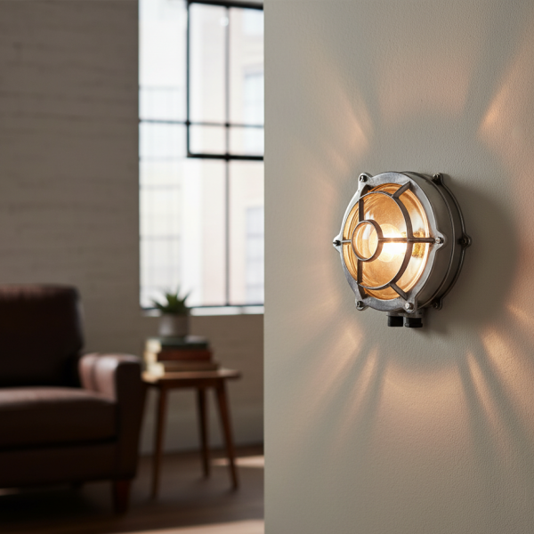 Aluminium Marine Bulkhead Wall Light – Nautical Industrial Cage Lamp for Boats, Ships & Home Décor