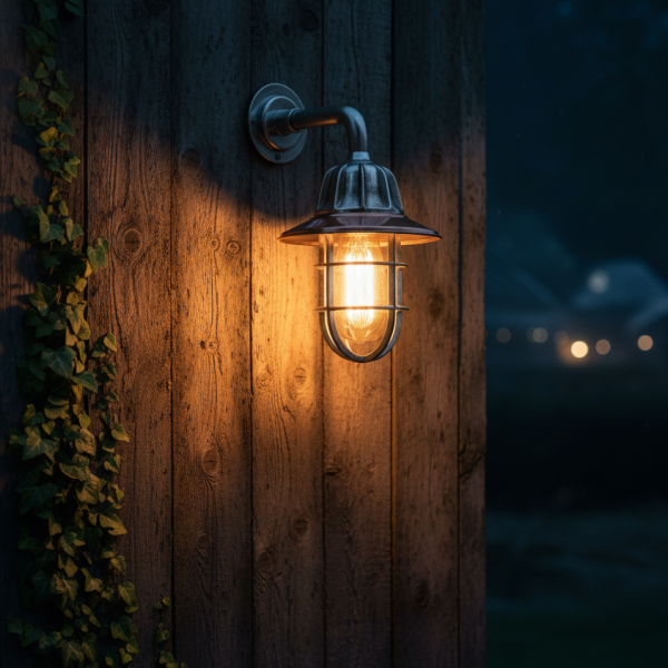 Solid Aluminum Nautical Wall Light – Vintage Marine Bulkhead Cage Lamp with Glass Shade – Industrial Coastal Outdoor & Indoor Lighting