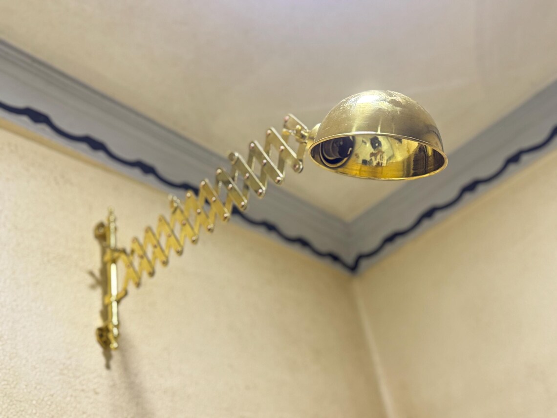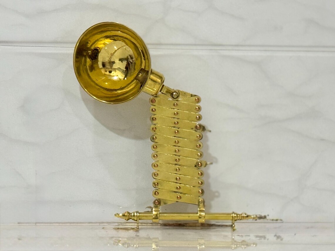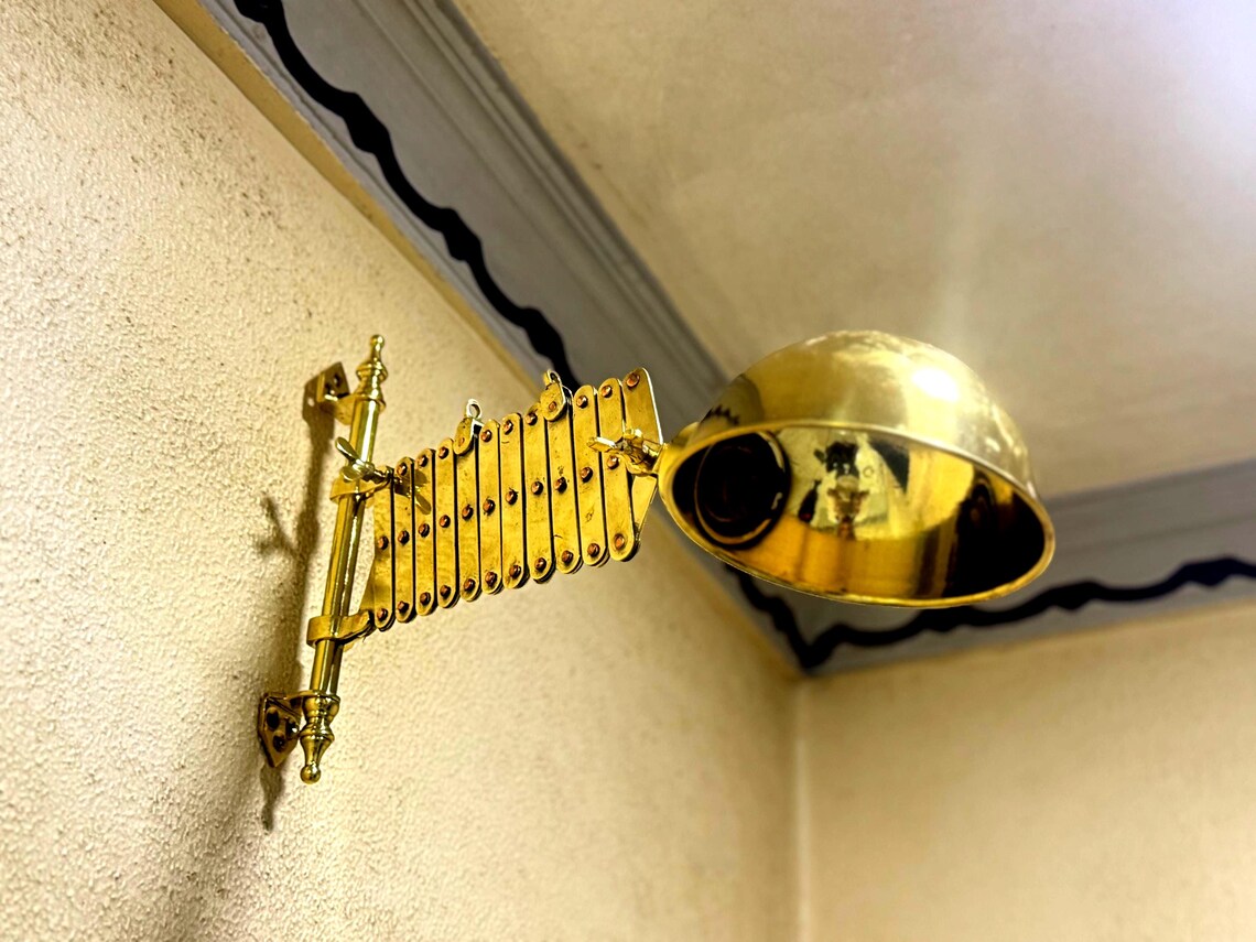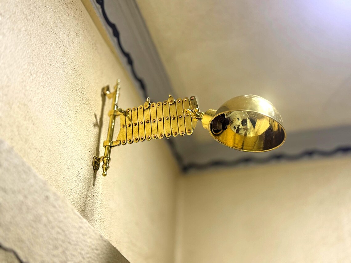 This Antique Brass Swing Arm Wall Lamp is a striking example of vintage industrial lighting, inspired by early 20th-century factory, library, and ship cabin lamps. Crafted from solid brass, this wall-mounted light features a classic accordion-style scissor arm with a smooth adjustable swing mechanism, allowing the lamp to extend, retract, and pivot effortlessly.