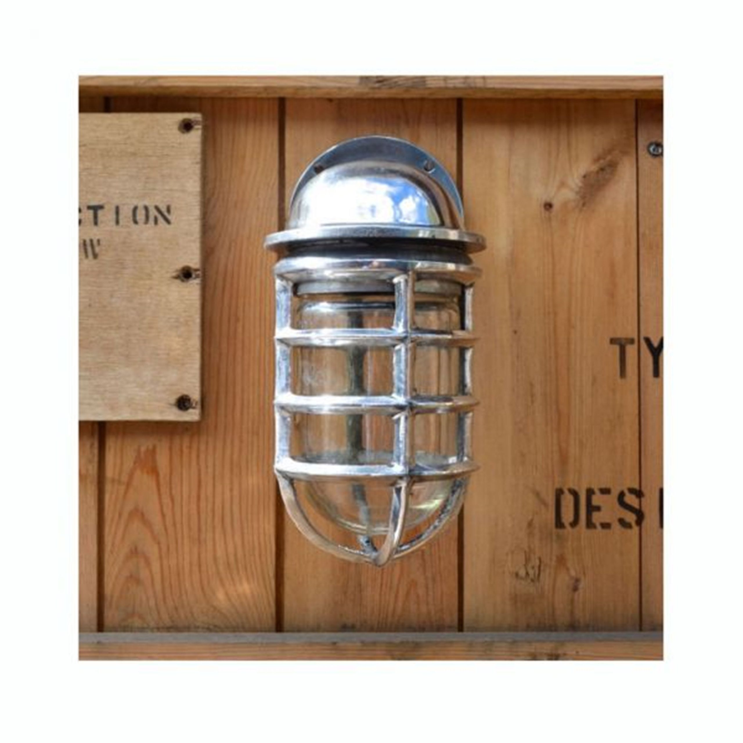 Its polished aluminum finish and industrial cage design make it a perfect lighting choice for hallways, patios, docks, porches, bathrooms, kitchens, bars, boat houses, and outdoor walls. The sturdy construction ensures long-lasting performance, while the timeless nautical styling complements both modern and vintage interiors.