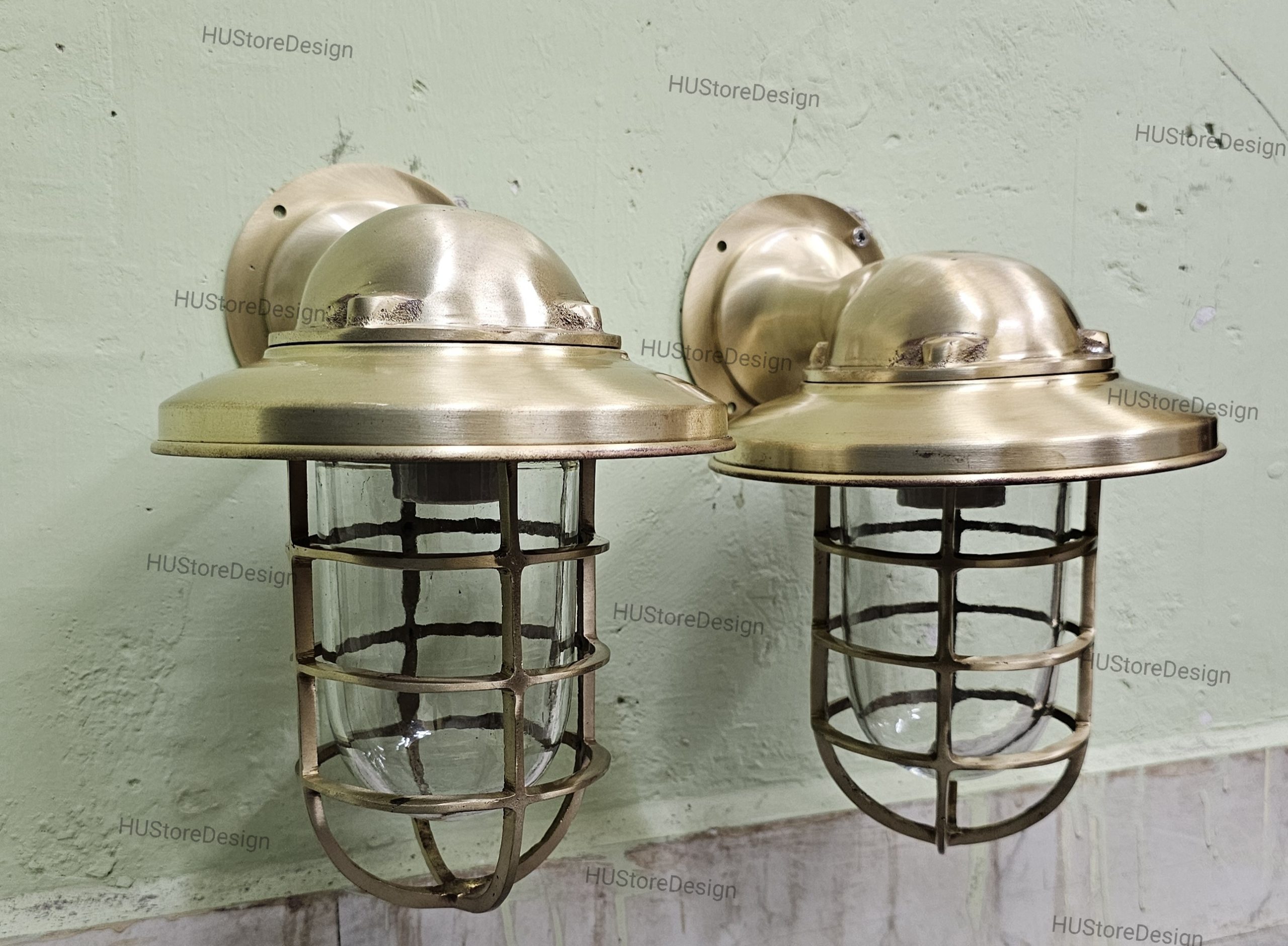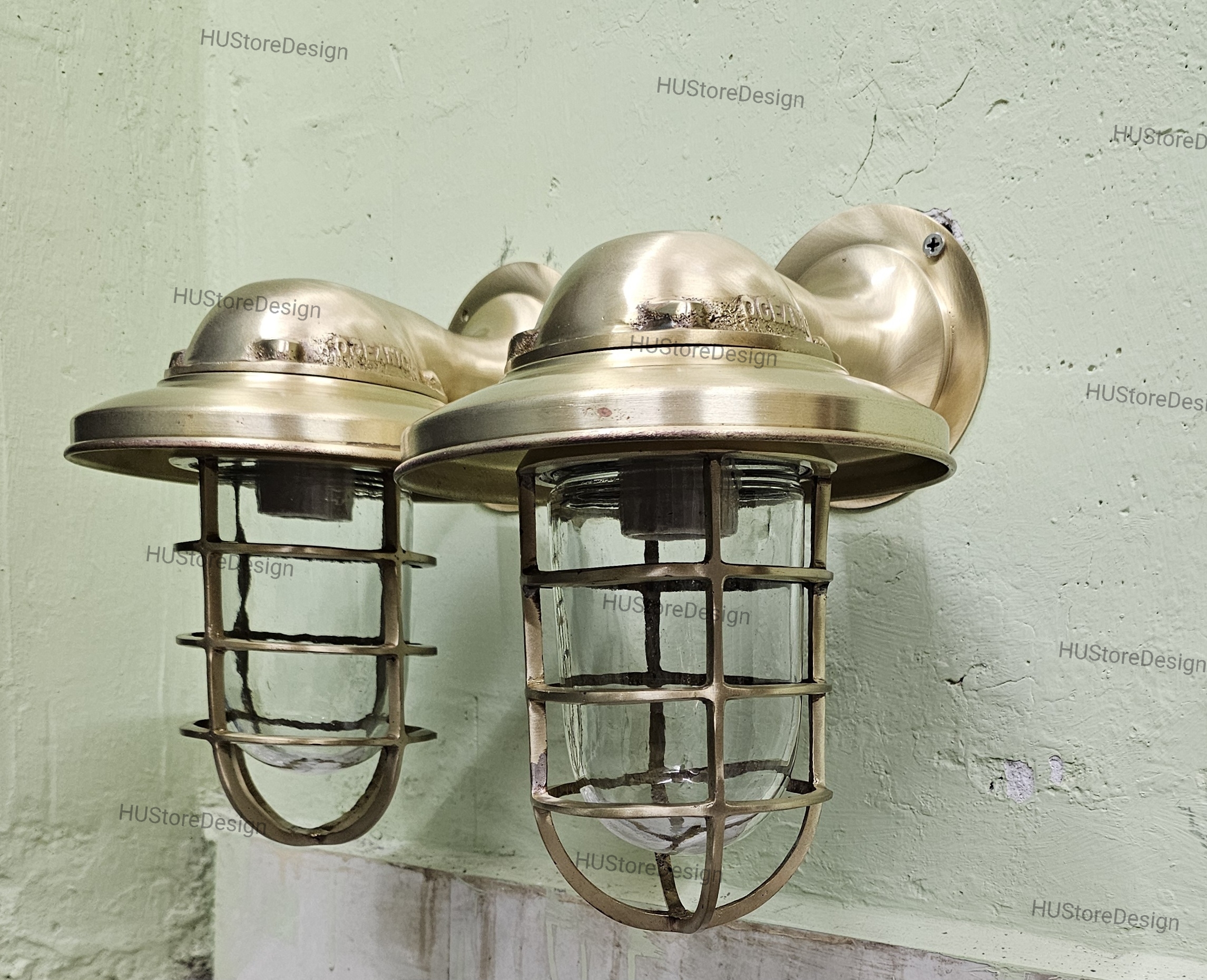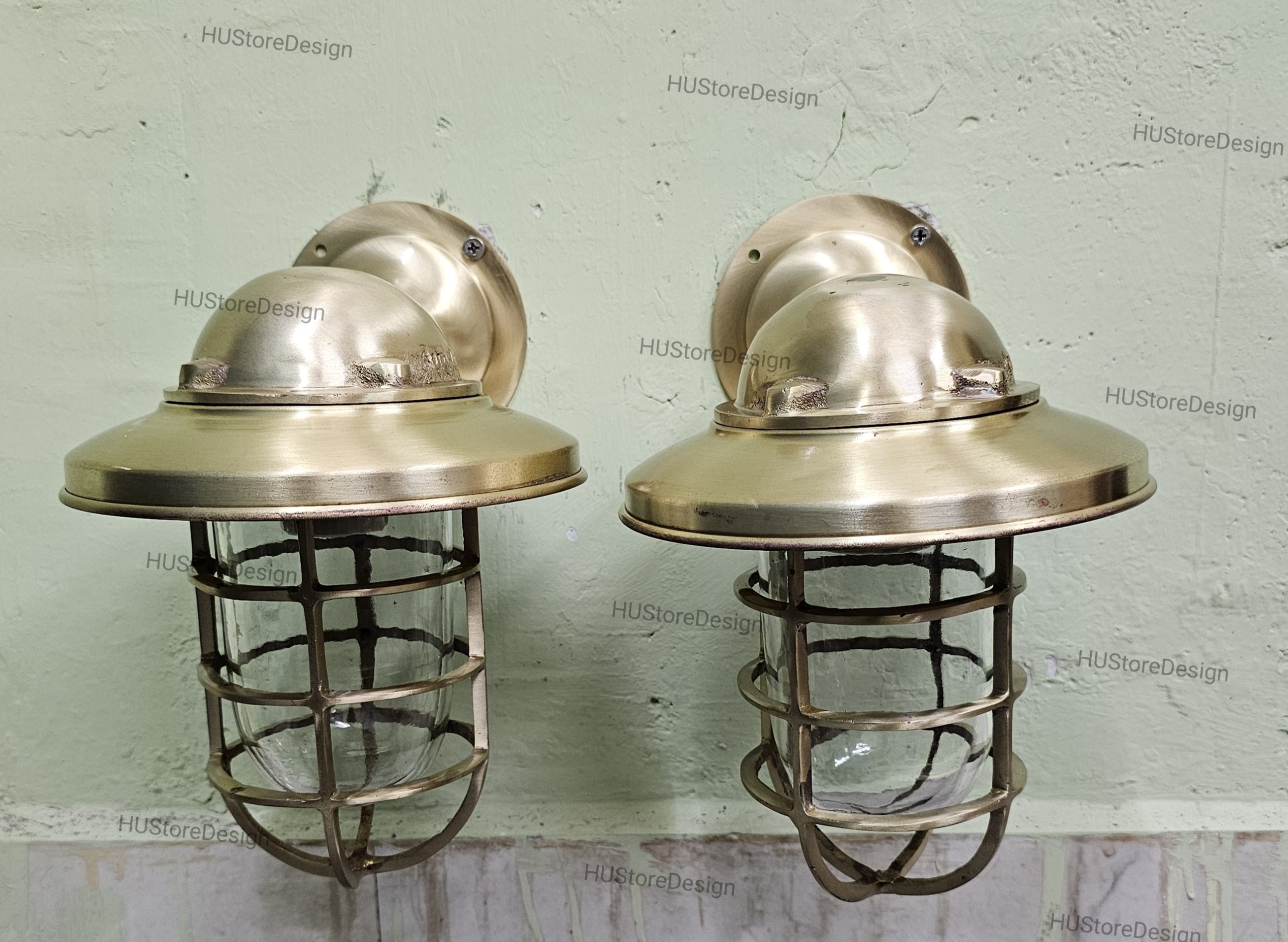 With their matte brass finish and rugged industrial design, these wall lights bring a perfect balance of vintage character and modern elegance — ideal for porches, hallways, bathrooms, patios, or nautical-themed interiors.