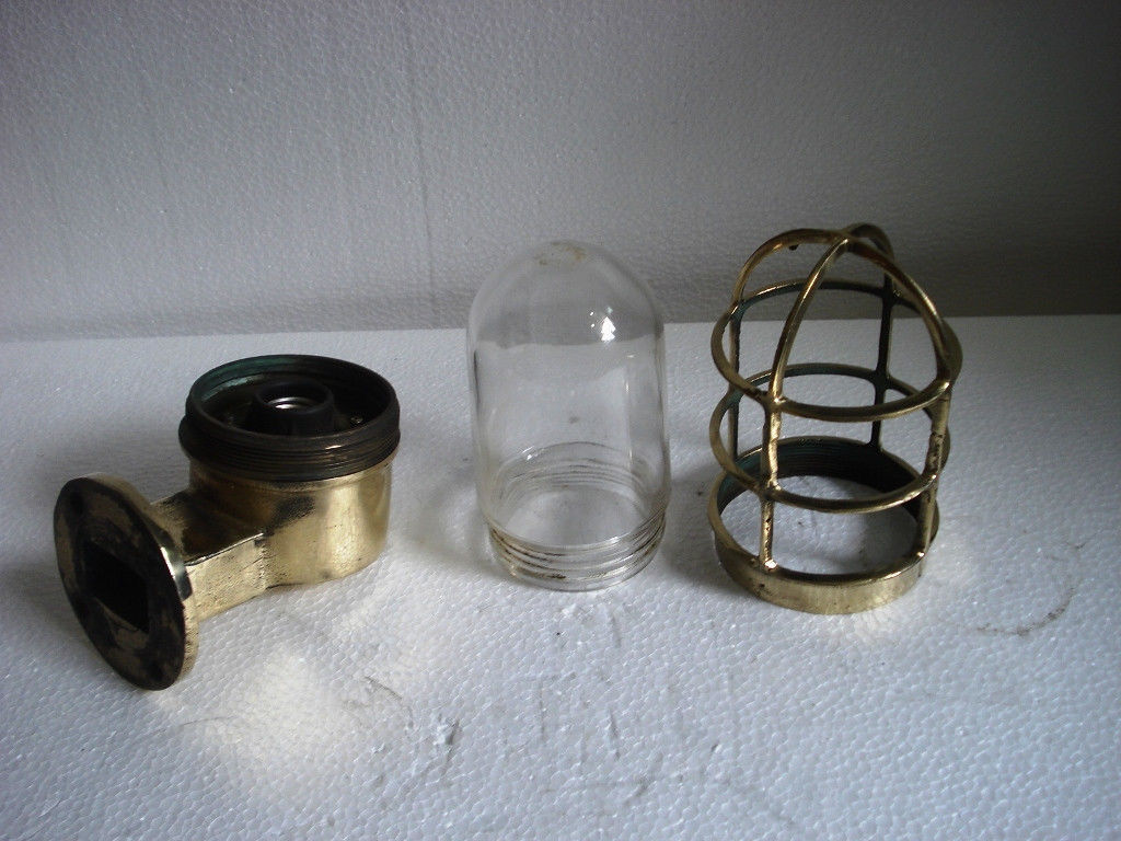 Crafted from solid brass, this industrial-style cage lamp combines timeless shipyard design with modern functionality. The clear glass dome and brass guard emit a warm, inviting glow — perfect for creating a cozy coastal or vintage interior.