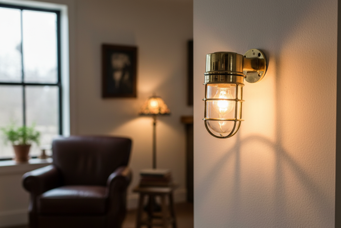 Install a pair on either side of a mirror or doorway to create an inviting vintage-industrial aesthetic with warm light reflections on brass.