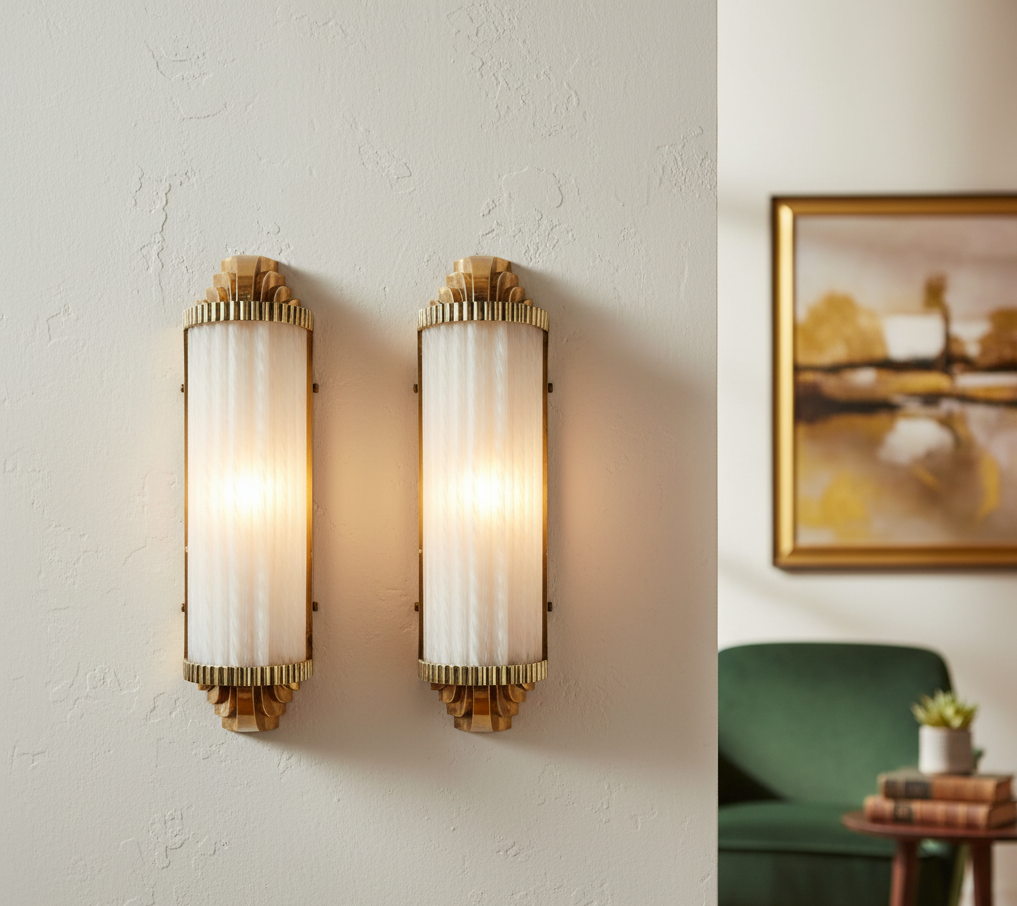 Install vertically on either side of a mirror or artwork for a luxurious Art Deco glow that enhances your wall design.