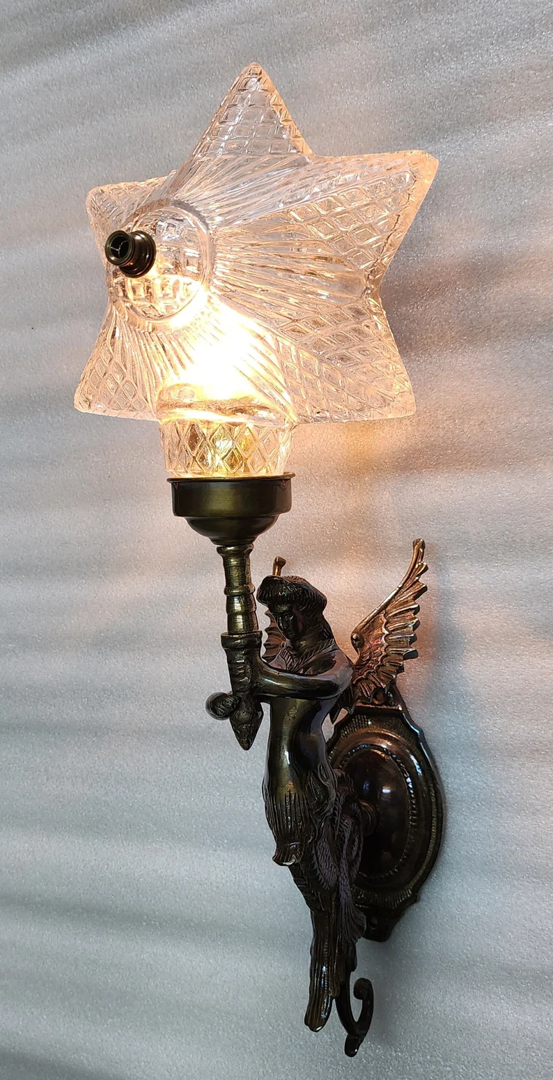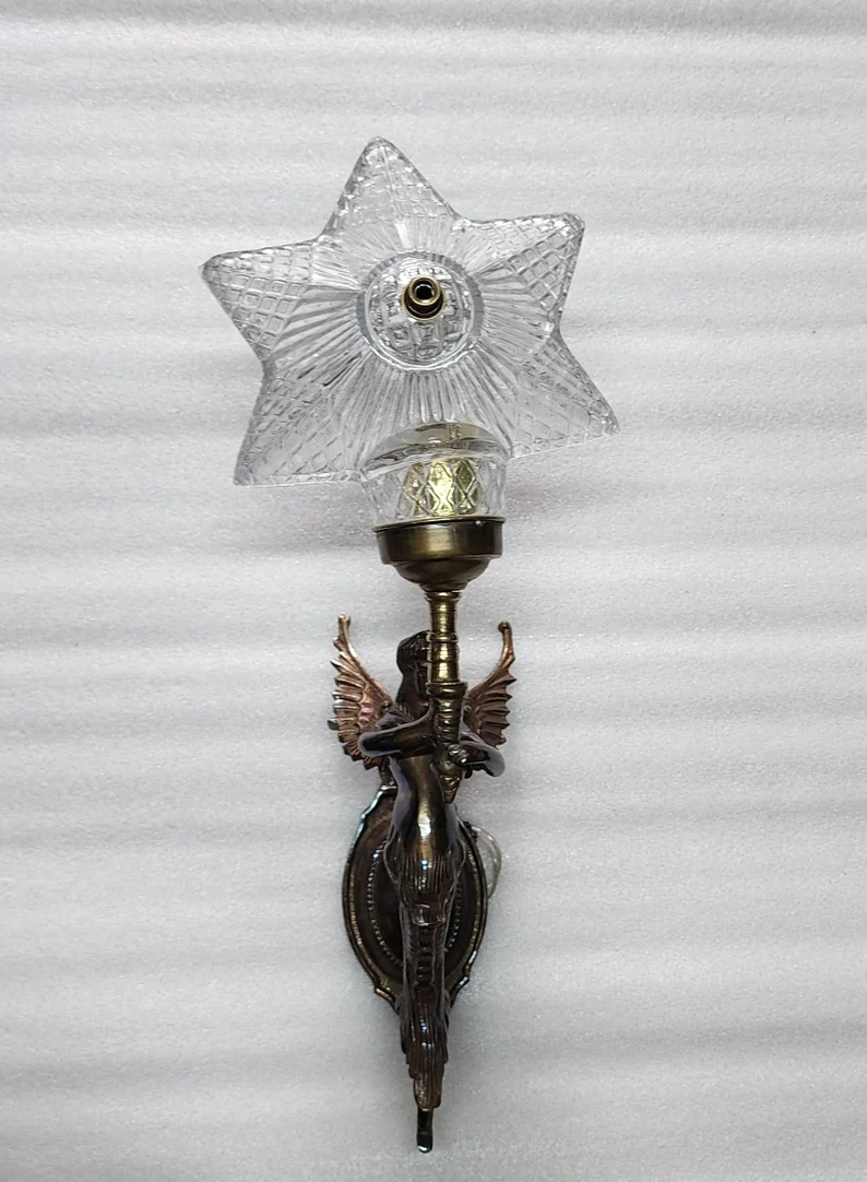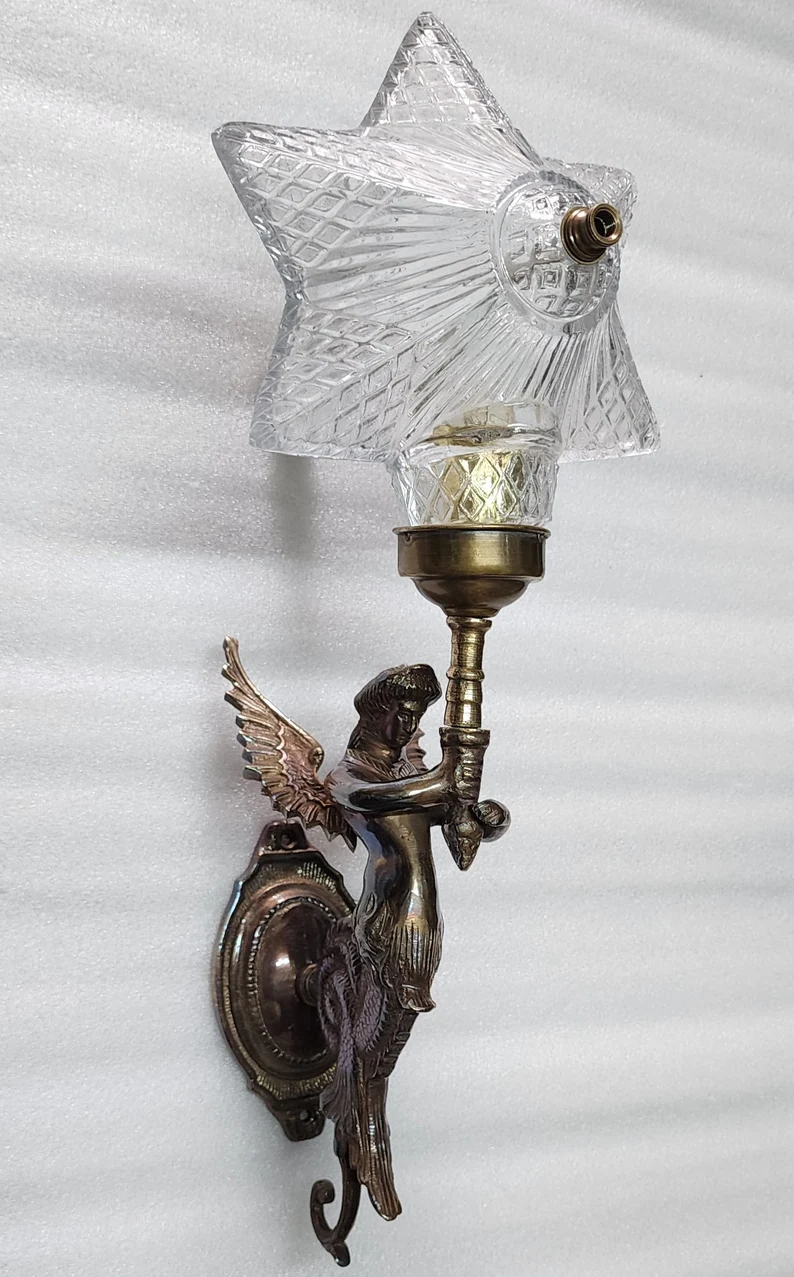 Each sconce features an exquisitely detailed mermaid figure cast in solid brass, gracefully holding a star-shaped glass shade that diffuses warm, ambient light. Inspired by early 20th-century Art Nouveau and Deco design, these lamps are handcrafted with intricate detailing that embodies luxury and classic nautical charm.