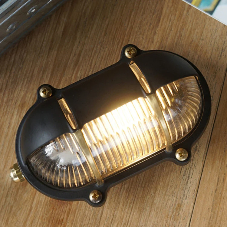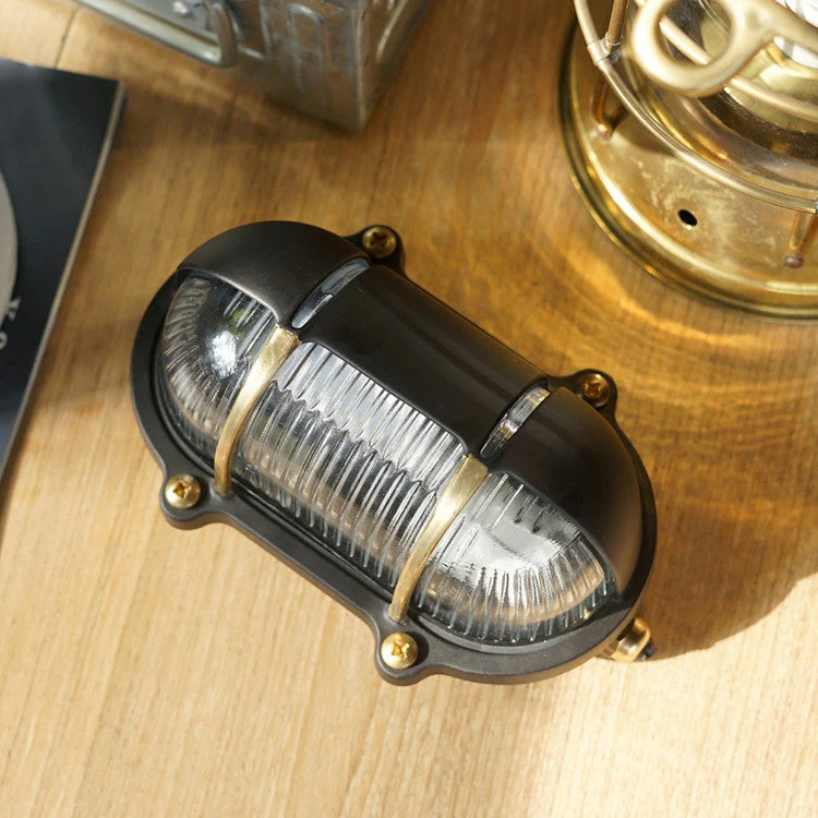 “Enhance your outdoor or indoor space with our robust Industrial Black & Brass Oval Bulkhead Light. Weighing 1.0KG and measuring 20cm in length by 10cm in width, this durable fixture features a resilient black finish contrasted beautifully with classic brass accents and a sturdy clear glass lampshade. Perfect for those seeking an industrial, modern farm, or refined nautical aesthetic, its rugged construction is designed to withstand the elements, making it ideal for patios, garages, workshops, entryways, or even contemporary bathroom interiors. It accommodates a standard E27 light source, providing powerful and reliable illumination. Easy to install and built for longevity, this distinctive bulkhead light from USA Nautical combines exceptional durability with sleek, versatile design.”