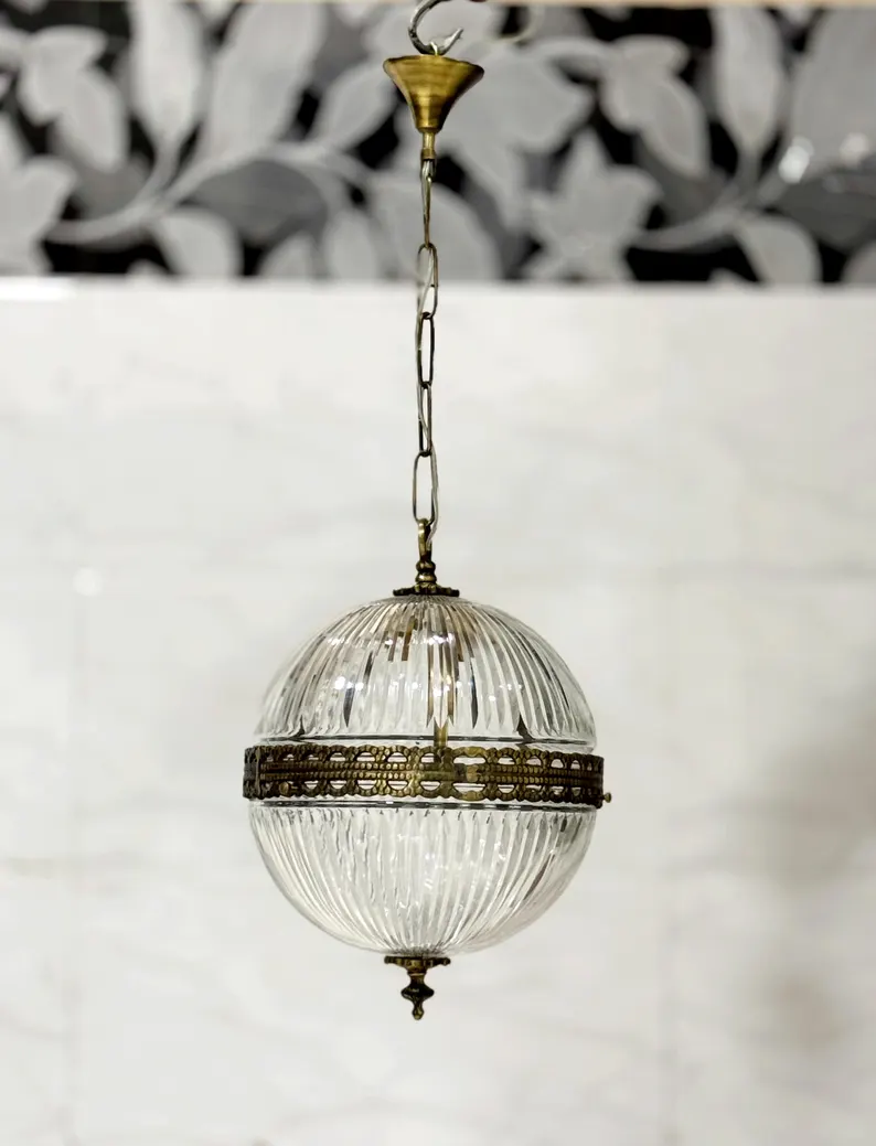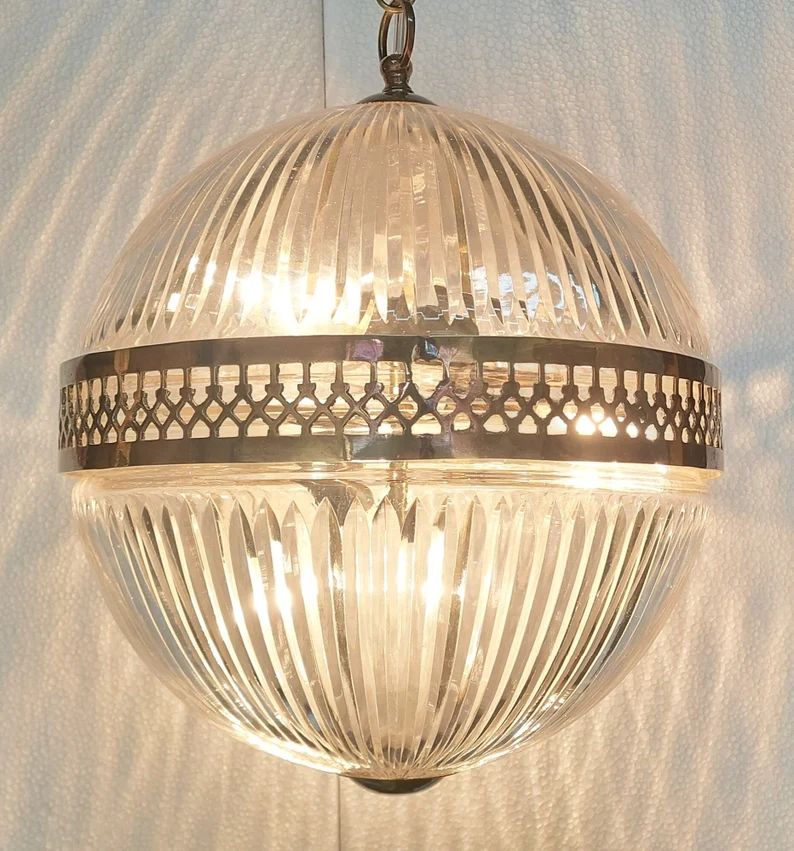 The crystal cut glass panels refract light beautifully, creating a warm, luxurious glow that elevates any interior. Perfect as a statement piece over dining tables, entryways, stairwells, bedrooms, or boutique commercial spaces, this pendant light blends seamlessly with both antique and modern décor.