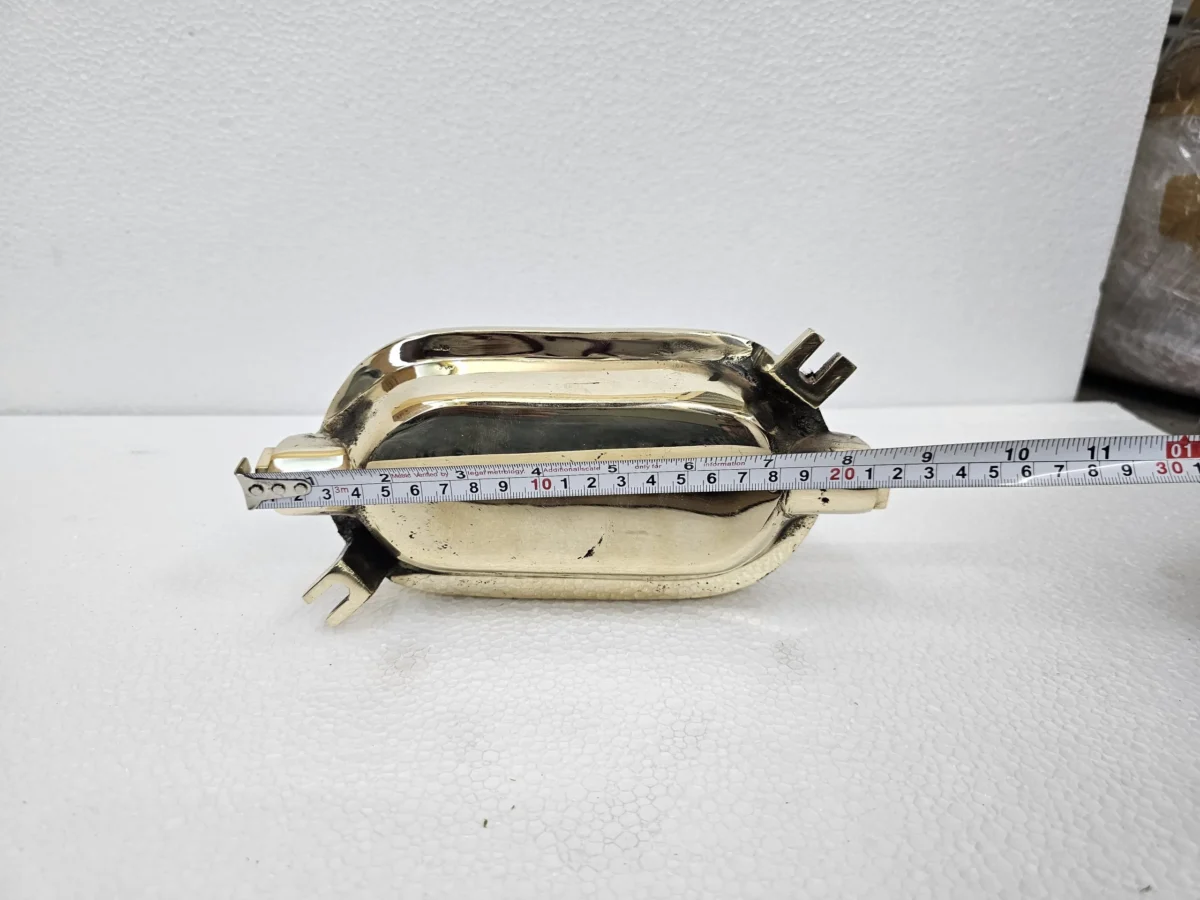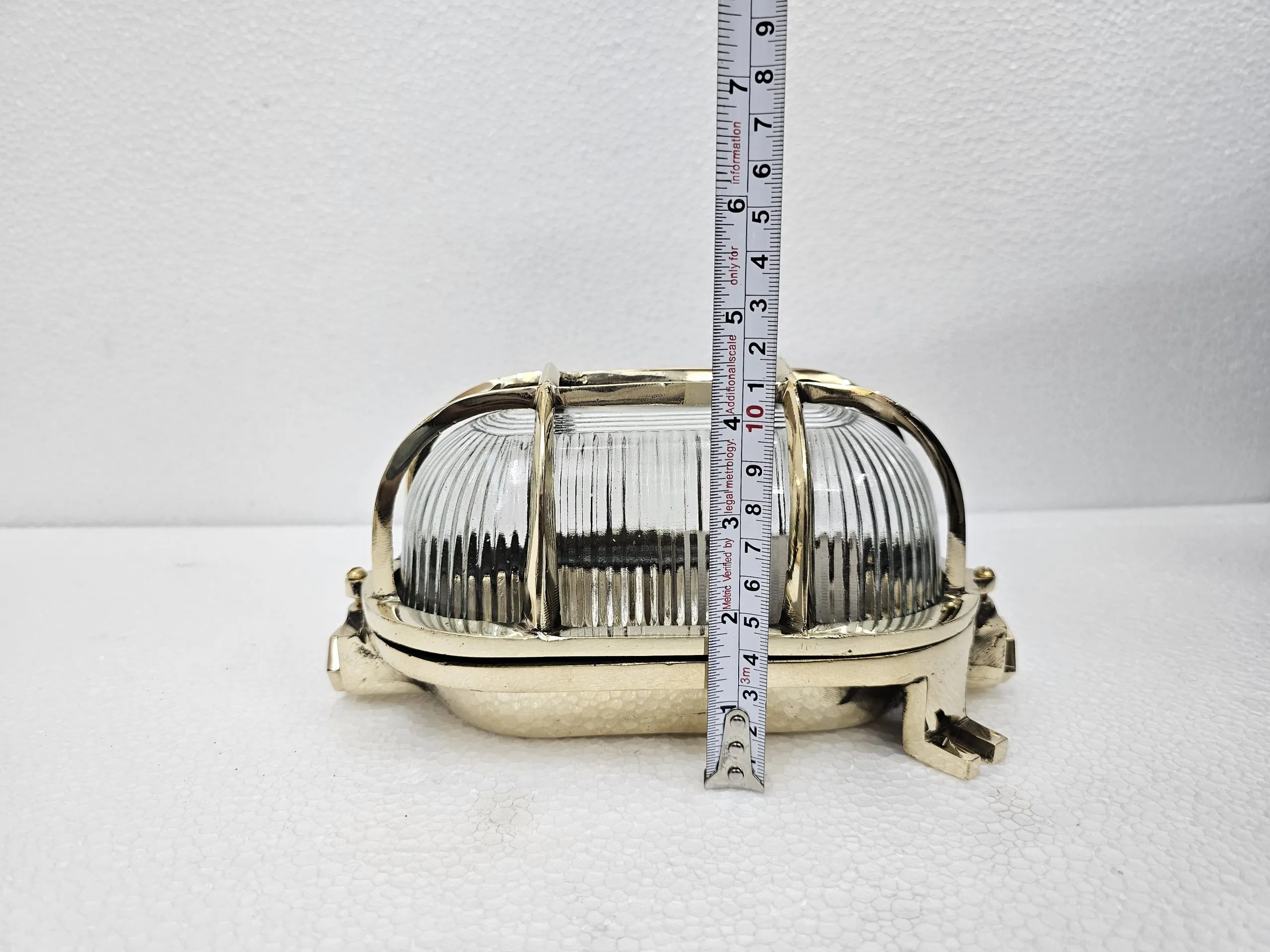 Every vintage nautical brass light fixture is individually hand-finished, showcasing exceptional craftsmanship and attention to detail. This gorgeous light has been carefully refurbished by removing old paint and wiring, polishing the brass, and rewiring it with a modern socket and wires. Designed to accommodate a regular bulb of up to 120 watts, this light is both functional and stylish.