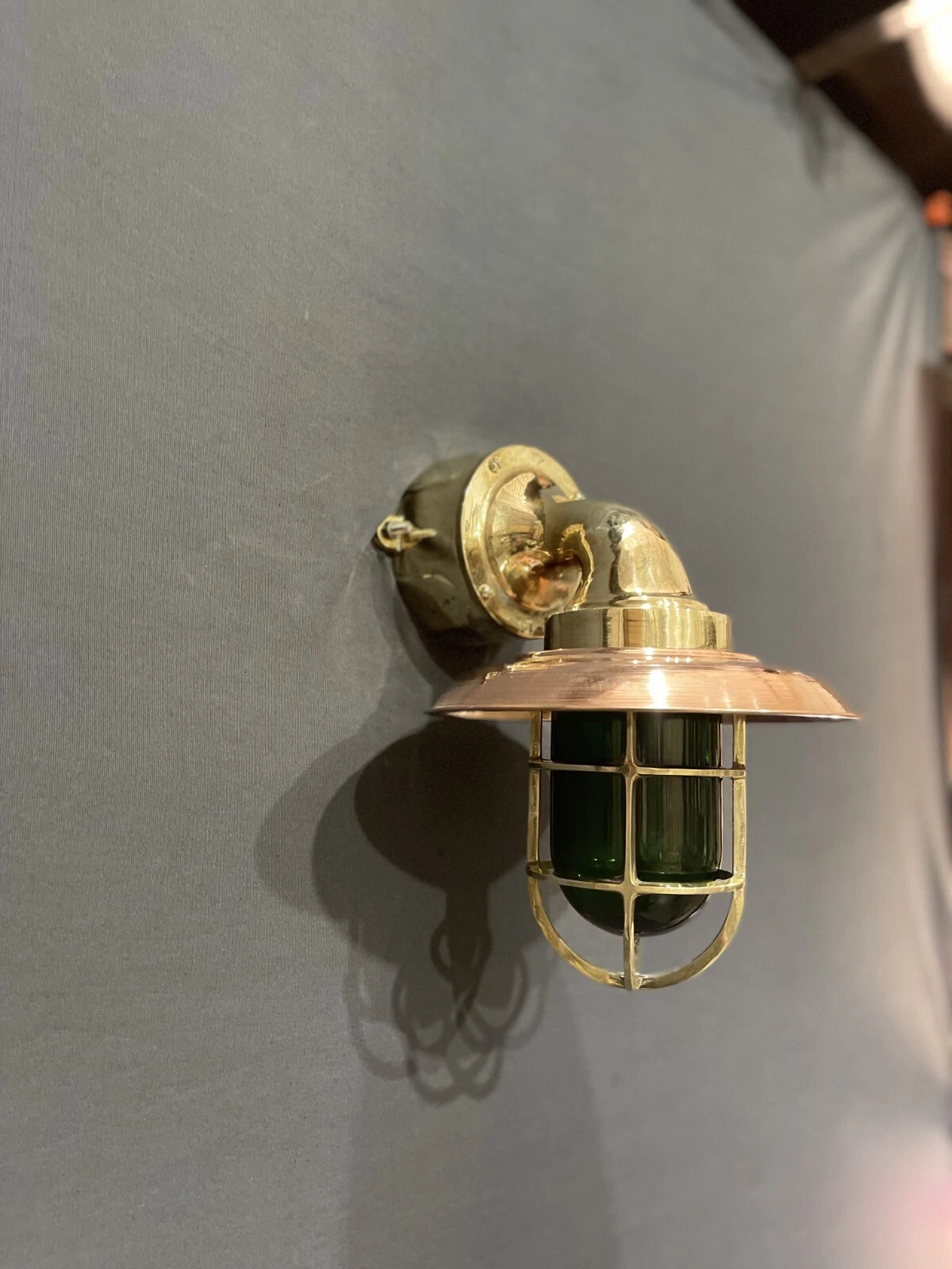 The solid brass construction with copper shade ensures long-lasting quality, while the deep green glass lens creates a warm, vintage glow. Perfect for nautical-themed homes, coastal cottages, bars, or restaurants looking for unique character lighting.