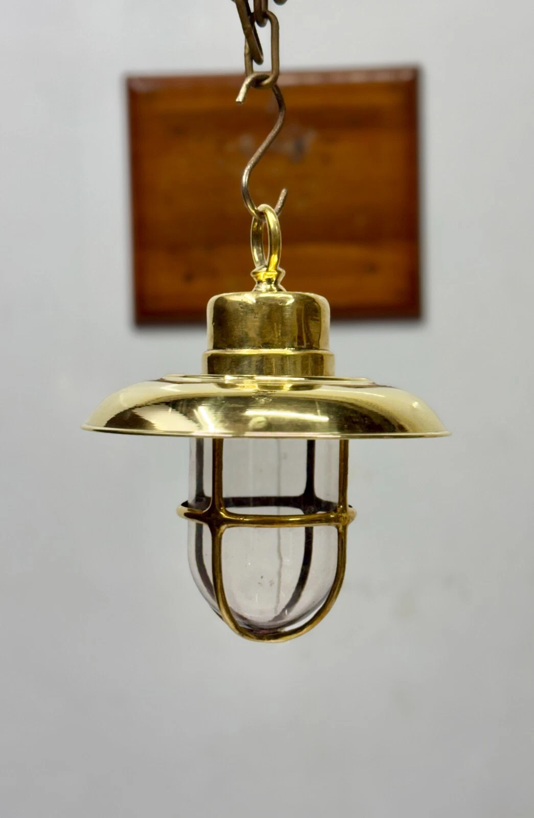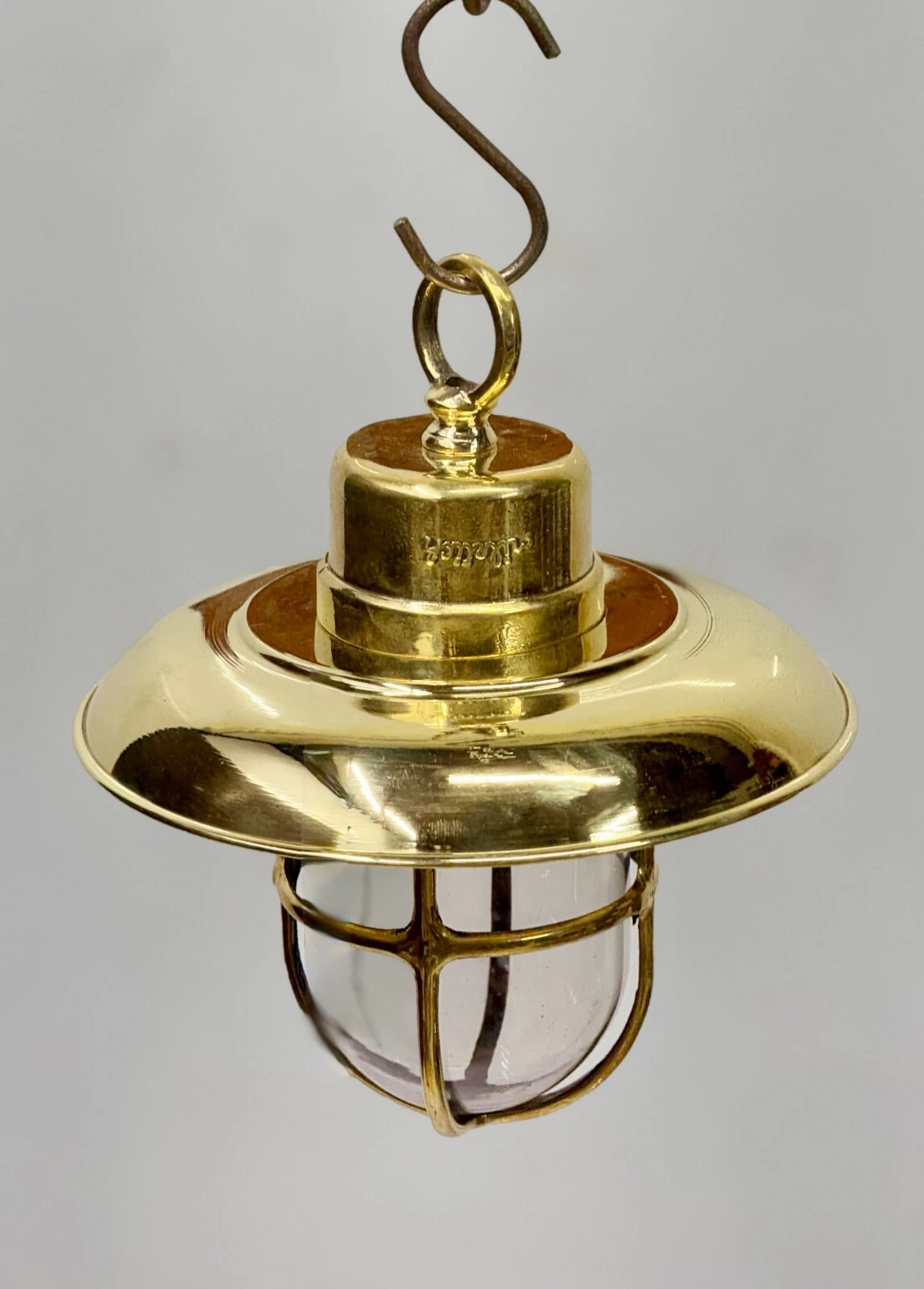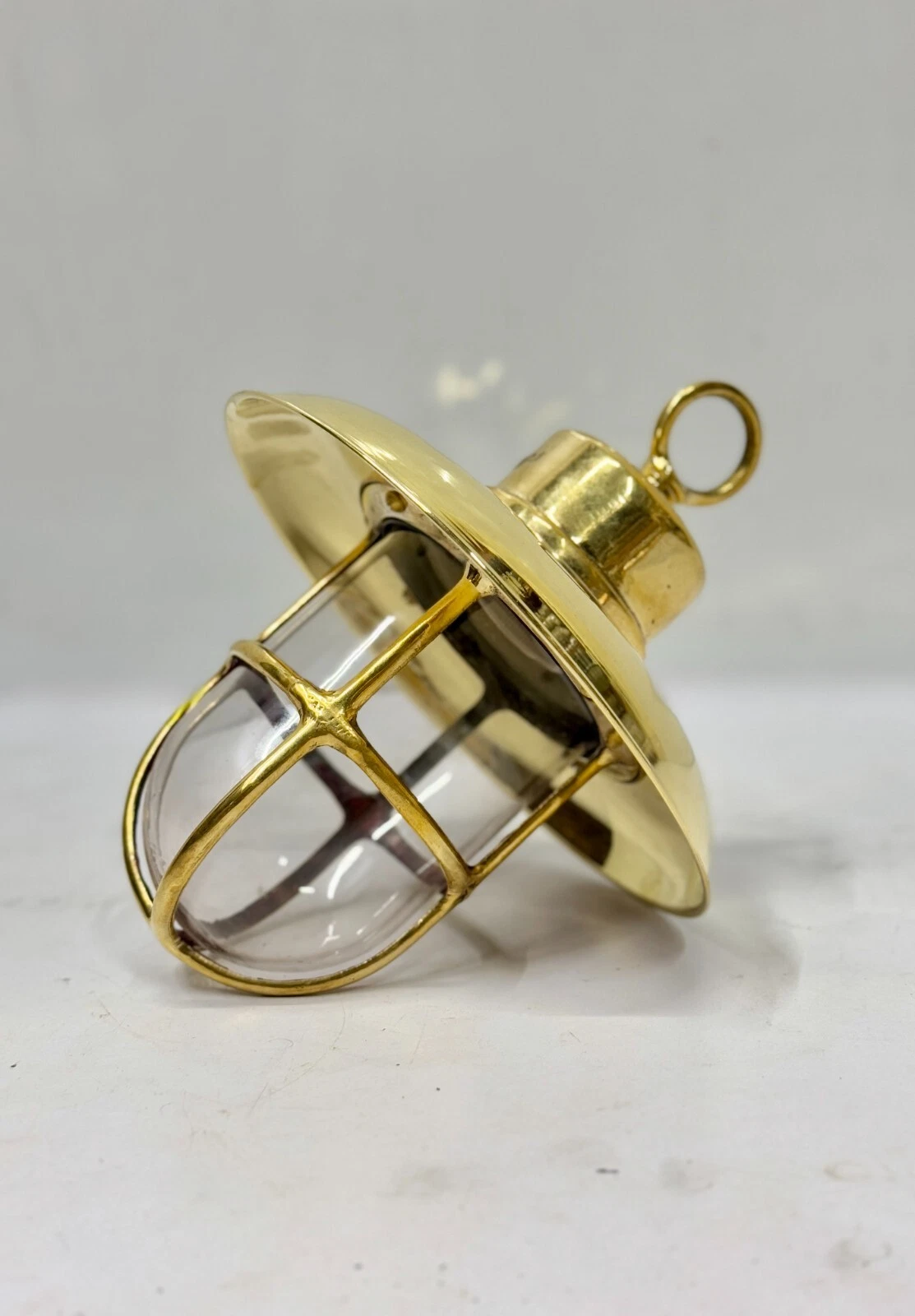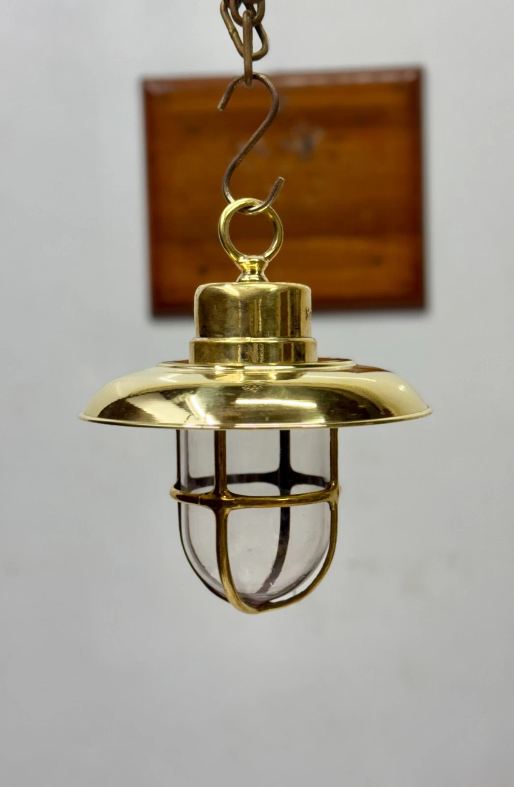 Bring authentic maritime charm into your space with this Vintage Brass Nautical Hanging Pendant Light, inspired by traditional ship lighting. Crafted from solid brass, this elegant fixture features a protective cage glass globe and a stylish dome shade, suspended with a hook for a classic marine look.