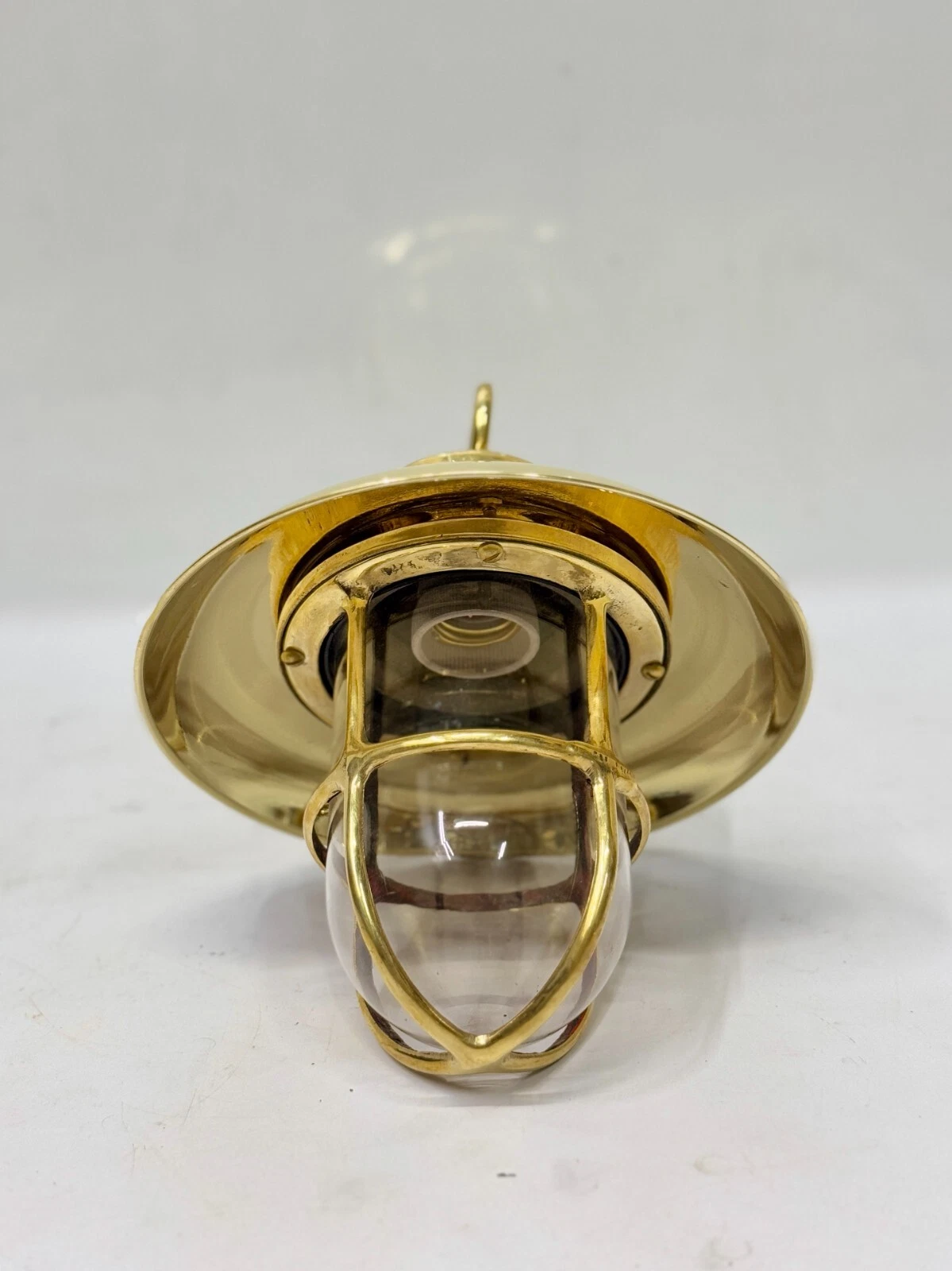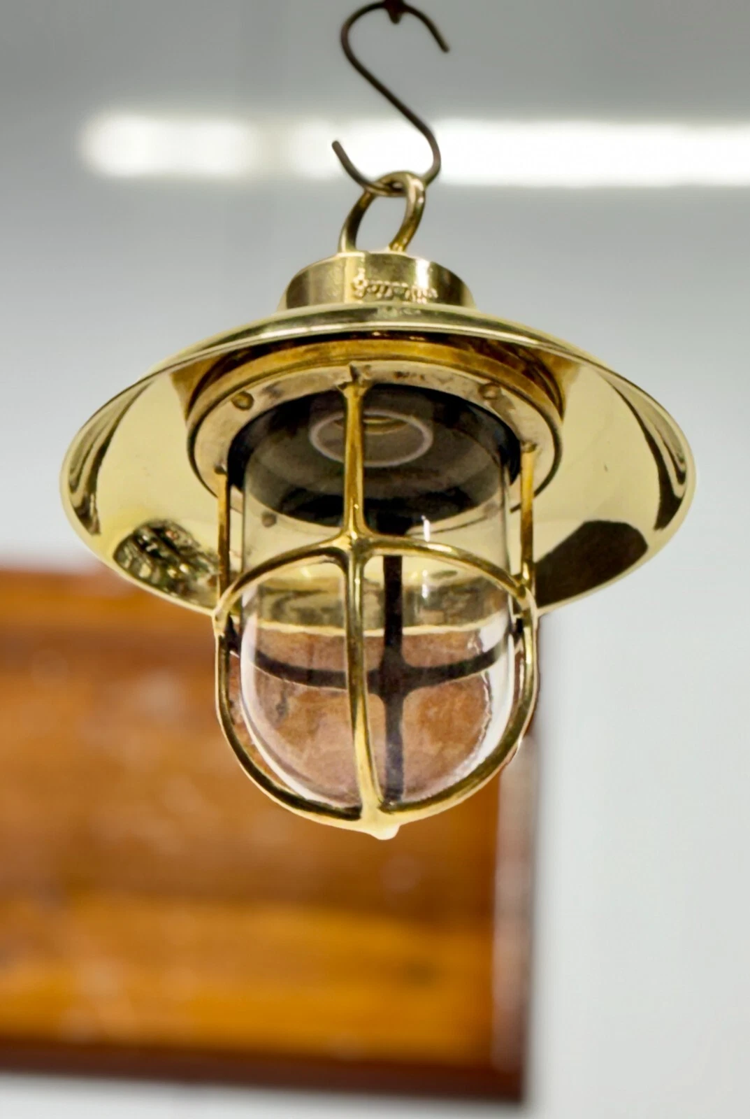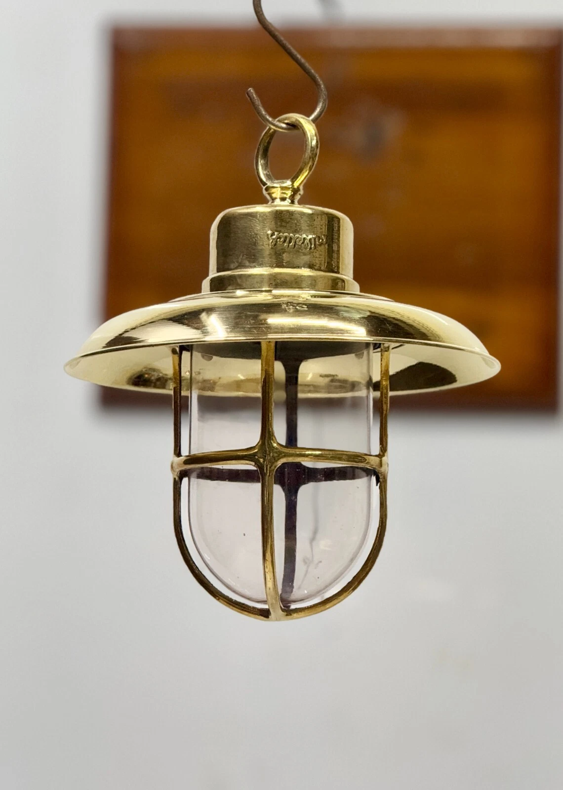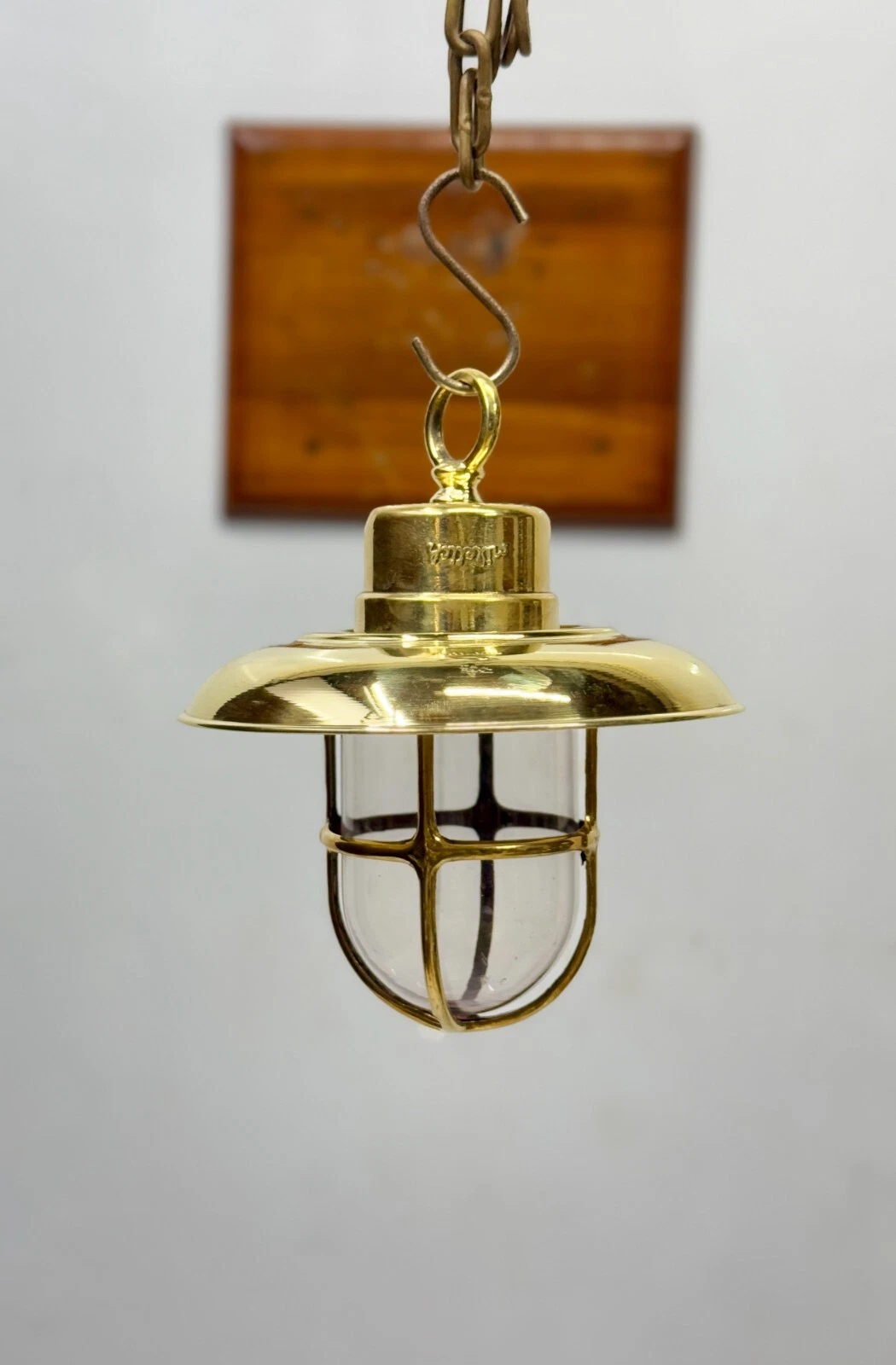 Bring authentic maritime charm into your space with this Vintage Brass Nautical Hanging Pendant Light, inspired by traditional ship lighting. Crafted from solid brass, this elegant fixture features a protective cage glass globe and a stylish dome shade, suspended with a hook for a classic marine look.